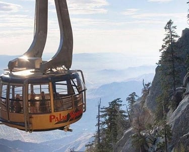 The rotating tram climbs over 8,500 feet into the San Jacinto Mountains, where cooler temperatures, hiking trails, and breathtaking views await.
