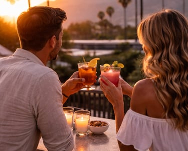 As the sun dips behind the San Jacinto Mountains, the sky turns warm shades of pink, orange, and gold. Many rooftop bars and hotel patios offer the perfect setting to enjoy the view with a cocktail in hand.