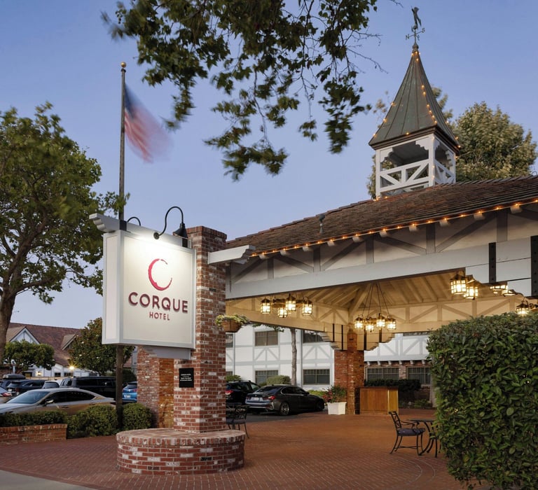 Hotel Corque – Spacious rooms, heated pool, and an easy walk to Solvang’s main attractions.