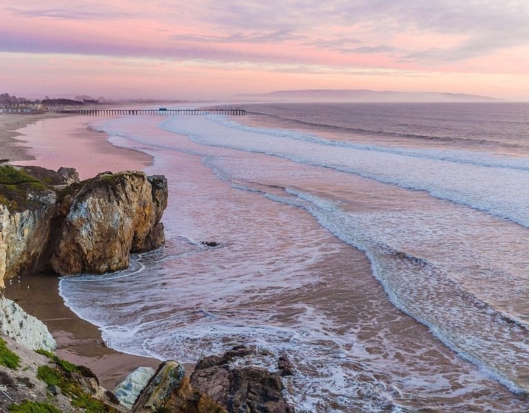 Pismo Beach is a great option for families who want a laid-back California beach trip with beautiful scenery and plenty of space to explore. The town has a relaxed coastal atmosphere and wide sandy beaches that are perfect for sandcastle building, beach walks, and watching surfers along the shoreline.